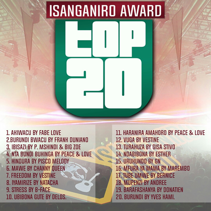 Isanganiro Award, un projet de la Radio Isanganiro pour la promotion de la musique burundaise avance normalement. De cette course, à sa 6ème édition, les vingt premières chansons sont déjà connues dès ce lundi 25 Septembre .