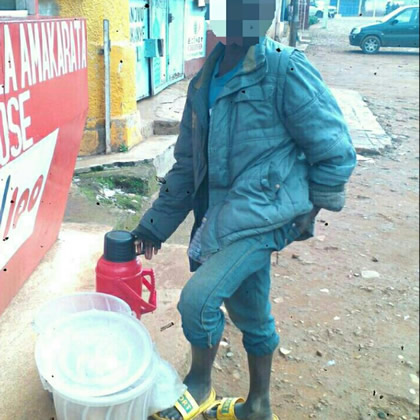 Près d’un parking de bus de transport, avec ses 10 ans, Jean Marie est muni d’un thermos et vend des beignets. Il essaie d’attirer l’attention des passants pour acheter son thé encore chaud. « Je travaille pour le compte de monfrère, il m’a dit que je pourrais retourner à l’école en considérant ce que j’aurais gagné pour lui » indique ce jeune garçon. Jean Marie explique avoir accepté ce travail parce que son grand frère lui avait promis de le prendre en charge quand il avait quitté ses parents.